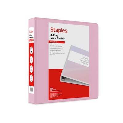 Staples Heavy Duty 1 1/2" 3-Ring View Binder, D-Ring, Light Pink (ST63092)