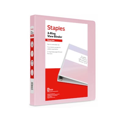 Staples Heavy Duty 1" 3-Ring View Binder, D-Ring, Light Pink (ST63089)