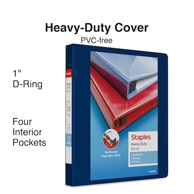 Keep your papers safe and accessible with this Staples heavy duty 1-inch D-ring view blue binder.