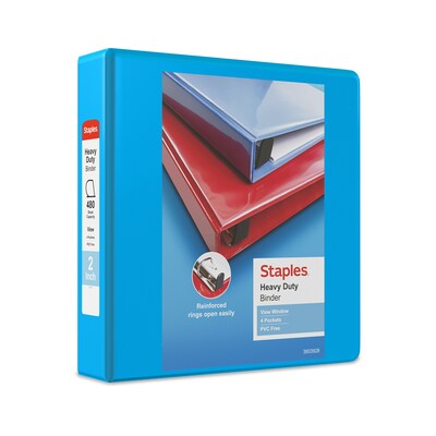 Staples Heavy Duty 2" 3-Ring View Binder, D-Ring, Light Blue (ST56287-CC)