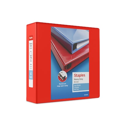 Staples Heavy Duty 4" 3-Ring View Binder, D-Ring, Red (ST56299-CC)