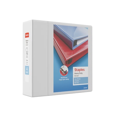 Staples Heavy Duty 4" 3-Ring View Binder, D-Ring, White (ST56266-CC)