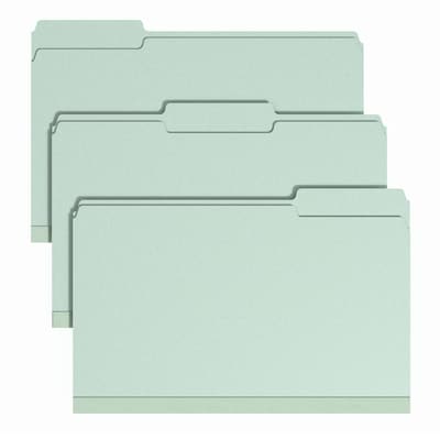 Staples Heavy Duty Pressboard Classification Folder, 2" Expansion, Legal Size, Green, 25/Pack (ST62739)
