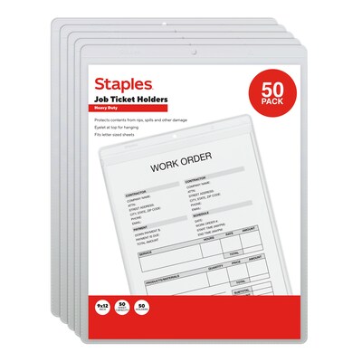Staples Heavyweight Sealed Job Ticket Holder, 9" x 12", Clear, 50/Pack (ST63085)