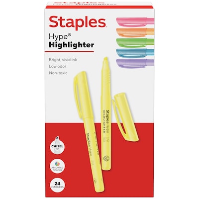 Staples Hype Stick Highlighter, Chisel Tip, Assorted, 24/Pack (ST62942)
