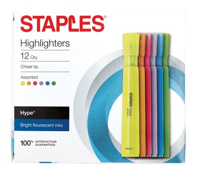 Staples Hype Tank Highlighters, Chisel, Assorted, 48/Pk (29204CT)