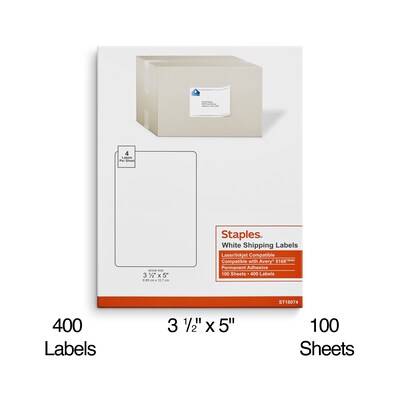 Staples® Inkjet/Laser Shipping Labels, 2 x 4, White, 10 Labels/Sheet, 100/Sheets/Pack (18060CT)