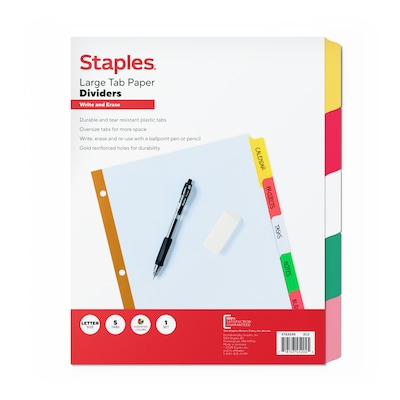 Staples Large Tab Write & Erase Paper Dividers, 5-Tab, Multicolor (ST63045)