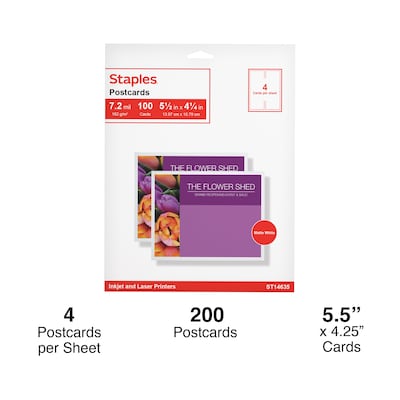 Staples® Matte Postcards, 5.5" x 4.25", White, 200/Box (12496)