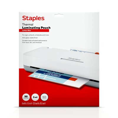 Staples Matte Thermal Laminating Pouch, Letter Size, 3 Mil, 50/Pack (ST63144)