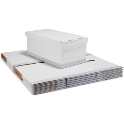 Stock your supply closet with these corrugated medium-duty storage boxes. The letter-size dimensions accommodate everyday office documents, while the 500-pound stacking strength withstands heavy items. A preprinted write-in area lets you label boxes for easy identification. These Staples corrugated medium-duty storage boxes feature lift-off lids for seamless access to the contents and easy-grip handles for comfortable carrying.