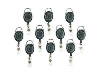 Staples Metal Carabiner Badge Reels, 30" Retractable Cord Length, Metal, Smoke, 10/Pack (41792-CC)