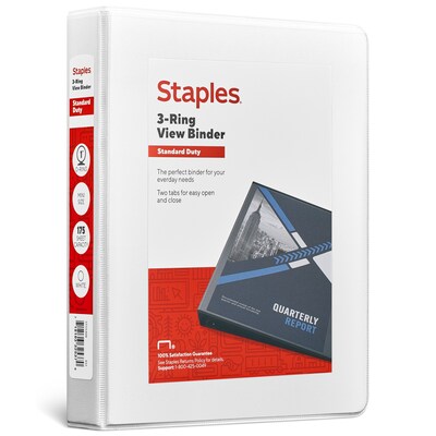 Be prepared in classes, appointments and meetings with this Staples standard 5.5 x 8.5-inch mini white view binder with 1-inch round rings.