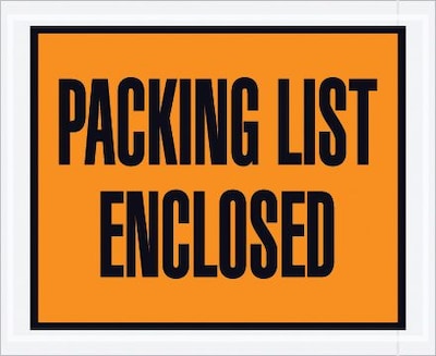 - Full face, colored Packing List Envelopes are pre-printed with "Packing List Enclosed" on heavy 2 mil poly
