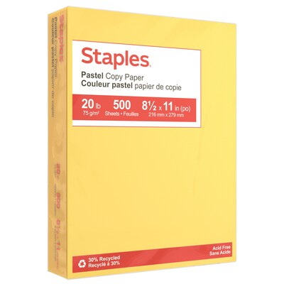 Staples Pastel 30% Recycled Color Copy Paper, 20 lbs., 8.5" x 11", Canary, 500/Ream (14787)