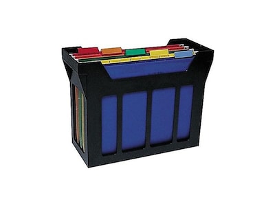 Sort and store paperwork with this file caddy and file folder set. The open design makes it easy to access documents stored within, while the included polylaminated hanging file folders let you organize papers into different categories. This caddy boasts durable plastic construction for long-lasting use. With its compact size, this Staples caddy and folder set fits neatly on a desktop or table.