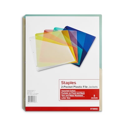 Staples Plastic File Jacket, Letter Size, Assorted, 5/Pack (89505)