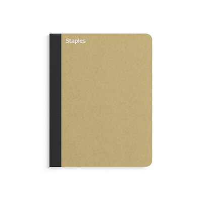 Get ample writing space for projects or lectures from this 100-page composition notebook. The wide-ruled pages offer plenty of room to write in large, clear letters, while the heavyweight kraft board cover provides durability. This Staples Premium 7.5 x 9.75-inch kraft composition notebook features a smooth permanent binding that resists snagging and page loss.