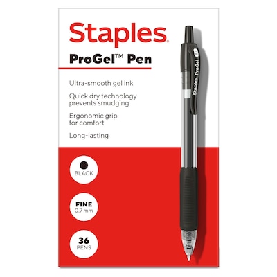 Staples ProGel™ Retractable Gel Pen, Fine Point, 0.7mm, Black Ink, 36/Pack (ST62097)