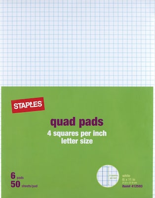 Staples® Quadrille Graph Pads, 50 Sheets, 4 Squares Per Inch, White, 8 1/2"H x 11"W, 36/Ct