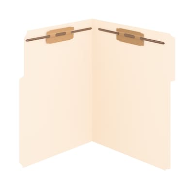 Organize efficiently with Staples Press Letter Size Manila File Folders featuring two fasteners.
