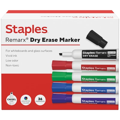 Staples Remarx Dry Erase Marker, Chisel Tip, Assorted, 36/Pack (ST62935)