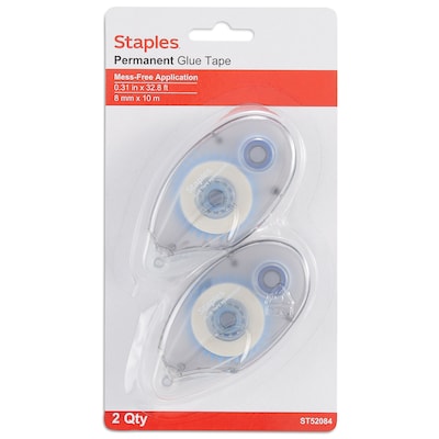 Staples® Roll-On Permanent Glue Tape, 1/3" x 393", 2/Pack (14993)