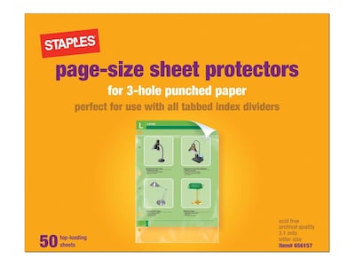 Staples Sheet Protectors for 3-Hole Punched Paper , Clear, 50/Box (15943-CC)
