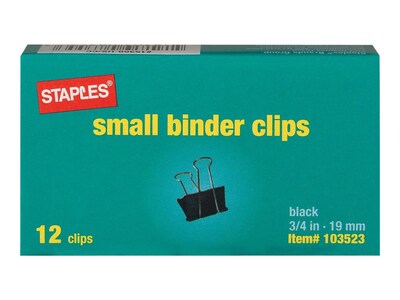 Prevent papers from flying away with this 12-pack of Staples small 0.75 x 0.38-inch-capacity black binder clips.