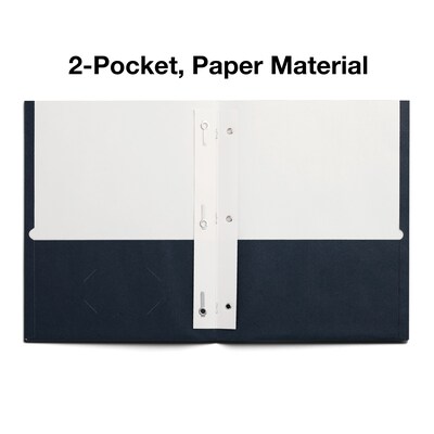 Staples Smooth 2-Pocket Paper Folder with Fasteners, Navy, 25/Box (50780/27547-CC)