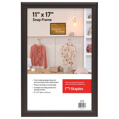 Staples Snap Frame Poster Holder, 11" x 17", Wall Mounted, Vertical/Horizontal, Black Metal (SF-1117-BLK)