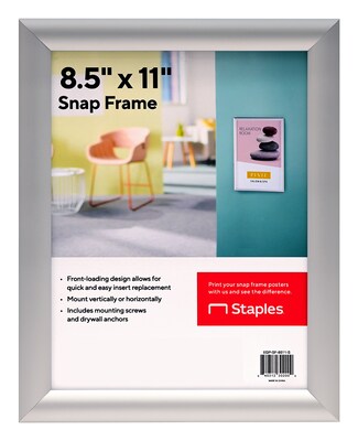 Staples Snap Frame Poster Holder, 8.5" x 11", Wall Mounted, Silver Aluminum (EGP-SF-8511-S)