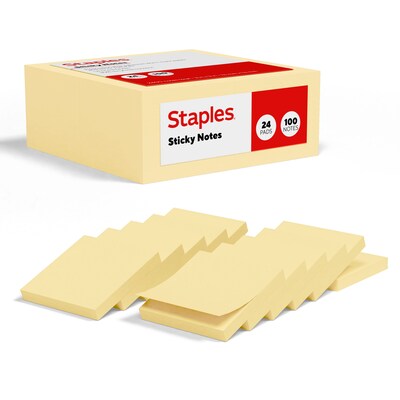 Staples Sticky Notes, 3" x 3", Sunshine Collection, 100 Sheets/Pad, 24 Pads/Pack (ST62868)