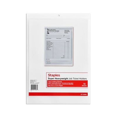 Staples Super Heavy Weight Job Ticket Holder, 9" x 12", Clear, 10/Pack (15946-CC)