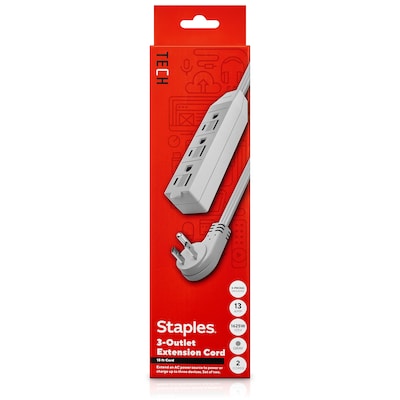Staples TECH 15' Extension Cord, 3-Outlet, 16 AWG, Gray, 2/Pack (ST62347)