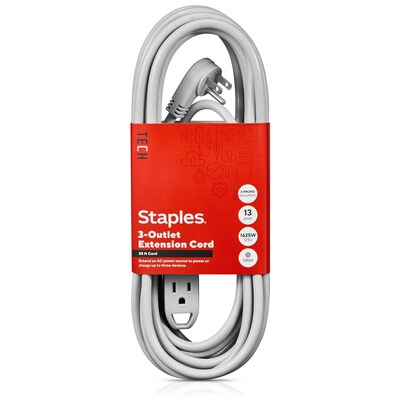 Staples TECH 25' Extension Cord, 3-Outlet, 16 AWG, Gray, 2/Pack (ST62346)