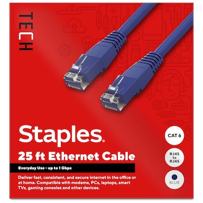 Staples TECH 25 ft. Cat-6 Ethernet Cable, Male to Male, Blue (ST62451)