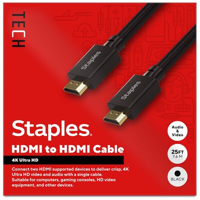 Staples TECH 25 ft. HDMI to HDMI Audio/Video Cable, Male to Male, Black (ST62476)