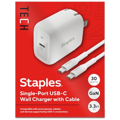 Staples TECH GaN USB-C Wall Charger with Cable, White (ST62325-CC)