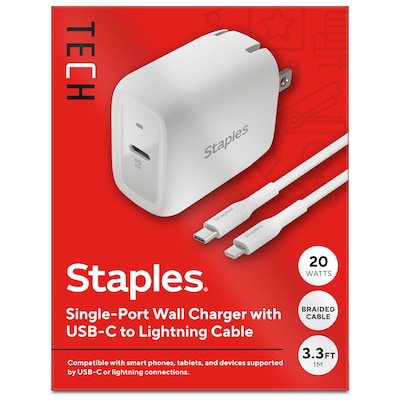 Staples TECH USB-C Wall Charger with Cable, 20W, White (ST62321)