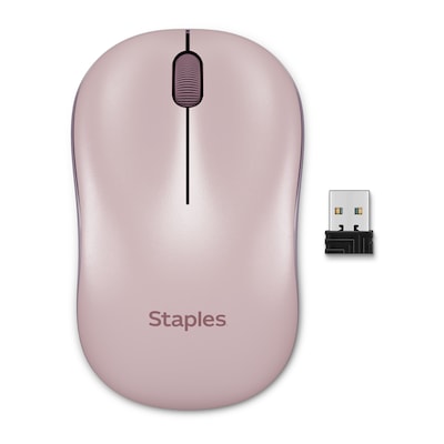 Staples TECH Wireless Ambidextrous Optical USB Mouse, Pink (ST63065)