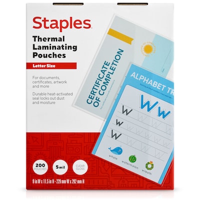 Staples Thermal Laminating Pouches, Letter Size, 5 Mil, 200/Pack