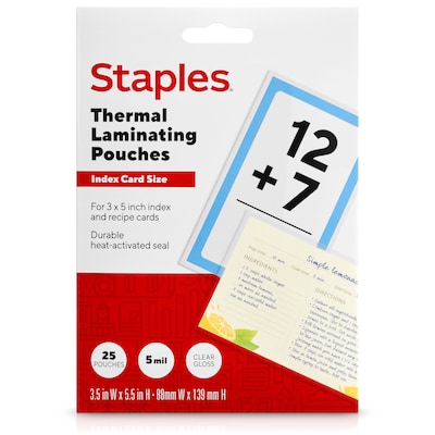 Staples Thermal Laminating Pouches, Index Card, 5 Mil, 25/Pack (5200802/5200805)
