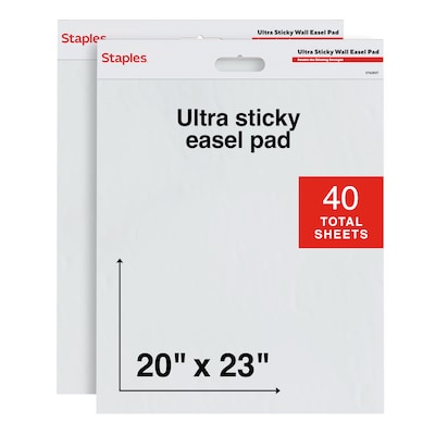 Staples Ultra Sticky Wall Easel Pad, 20" x 23", 20 Sheets/Pad, 2 Pads/Pack (ST62837)