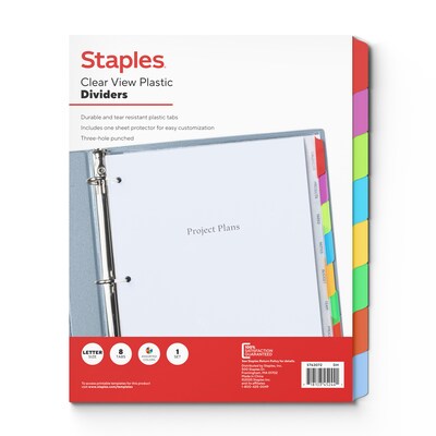 Staples View Plastic Dividers, Multicolor, 8-Tabs (ST63072)