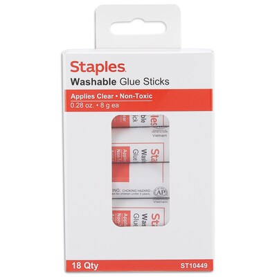 Staples® Washable Glue Sticks, 0.28 oz., Clear, 18/Pack (ST10449/10449)