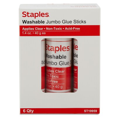 Staples Washable Glue Sticks, 1.4 oz., Clear, 6/Pack (ST19959/19959)