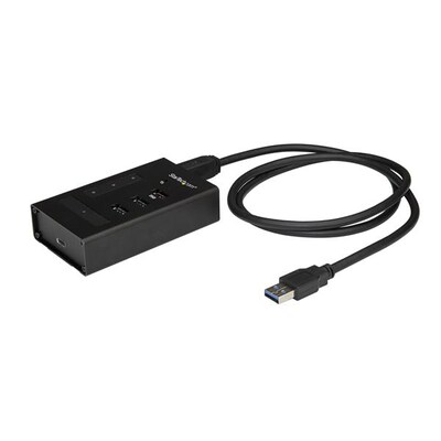 Add 3x USB-A ports & 1x USB-C port to a computer w/ this mountable USB 3.0 5Gbps hub - Includes desktop or wall-mount bracket - Supports USB Battery Charging Specification 1.2 - Delivers up to 2.4 amps through the USB-A charge port - Connect a USB-C device through a USB-A port - Industrial metal enclosure - USB-A ports are compliant w/ USB 3.0 and backwards compatible w/ USB 2.0 and 1.1 devices - 4 Port USB 3.0 Hub / Industrial USB Hub / Mountable USB Hub / USB Hub with Type C / Powered USB Hub