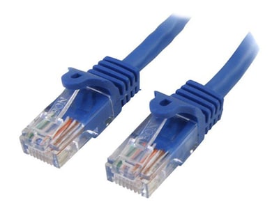 StarTech.com® RJ45PATCH35 35' Blue UTP Cat 5e patch cable provides PoE capable gigabit network application. Snagless RJ45 male-to-male connectors offer reliable connection.