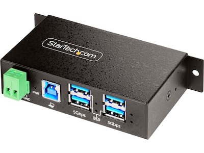 This StarTech 4-port managed industrial USB 3.2 Gen 1 (5Gbps) hub enables users to toggle individual USB ports on/off and to reboot the hub, using the USB hub administrator software. With robust housing and versatile power input options, the USB Hub is designed to cater to the needs of IT professionals working in industrial settings such as factories, warehouses, offices, and other similar environments.